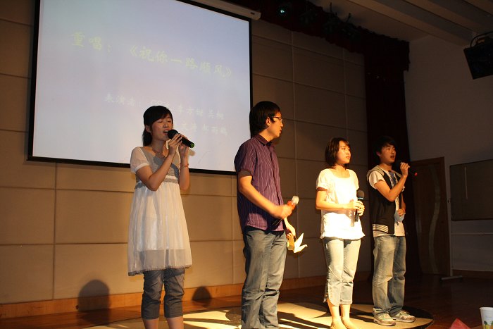 大一新生的重唱《祝你一路顺风》,在歌声中本场晚会落下帷幕