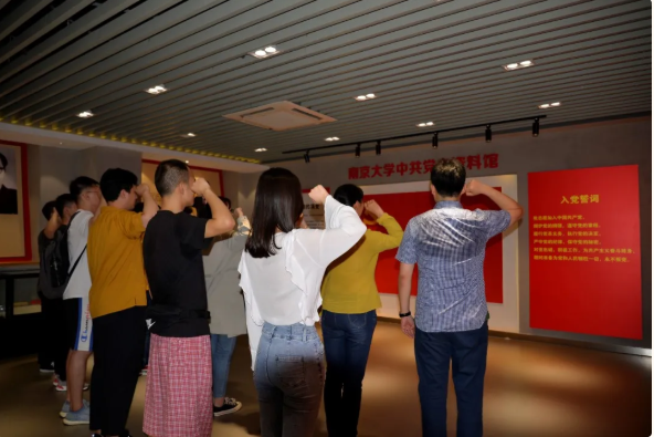 参观结束后,开甲书公司党支部党员组织入党积极分子们在资料馆合影留念,支部党员在胡圣佑同志的带领下共同重温入党誓词,希望党员同志们能通过学习党史不忘初心、牢记使命,以更加饱满的热情投身学习工作,切实发挥共产党员的先锋模范作用。