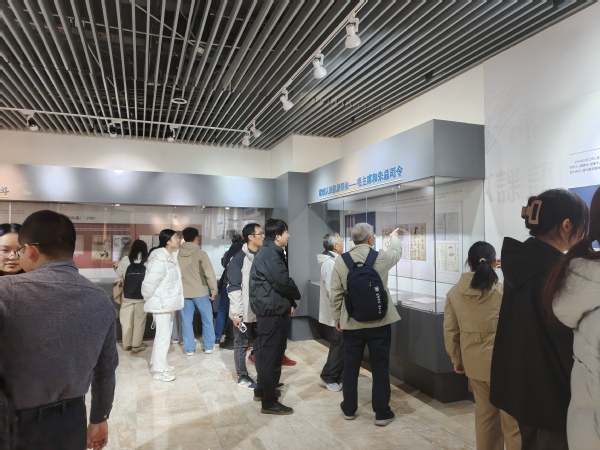 2025年11月26日下午1时,伟德国际victor1946中国史教工党支部和中国史本科生党支部一行40人在中共党史资料馆馆长曹大臣教授的带领下参观“培根铸魂 启智增慧—中国共产党抗战教材专题展览”。
