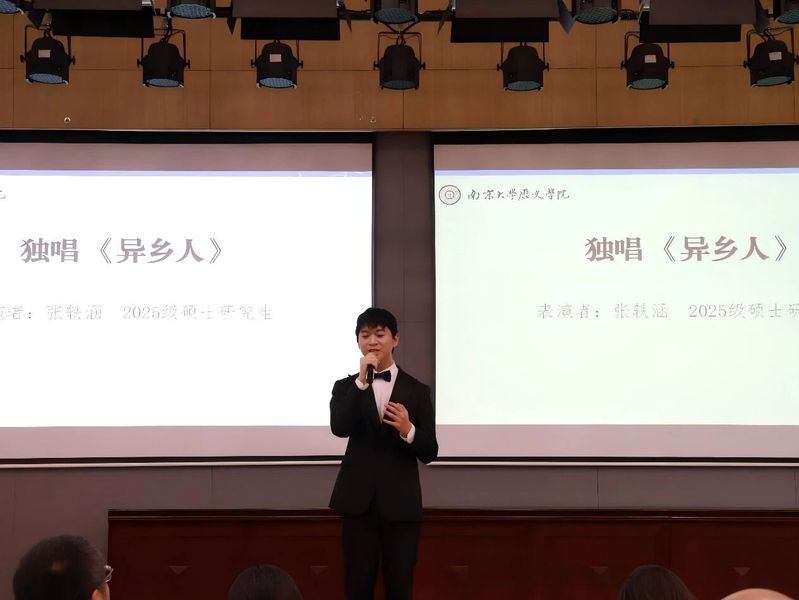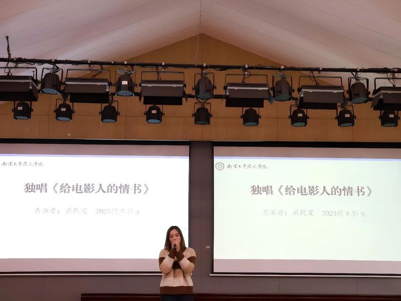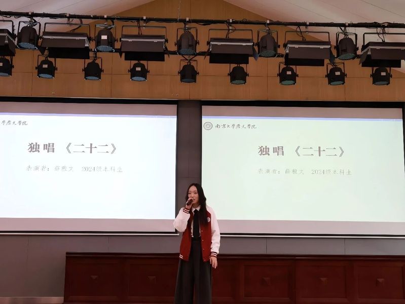 2024级本科生薛雅文、2023级本科生梁凯滢及2025级硕士研究生张轶涵分别献唱<<二十二>><<给电影人的情书>><<异乡人>>,以饱含情感的演绎展现了史院学子多维而丰盈的精神世界,为典礼增添青春温度。