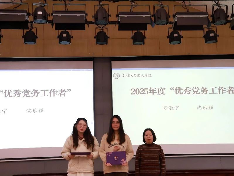 罗淑宁、沈乐颖2名同学荣获伟德国际victor19462025年度优秀党务工作者荣誉称号。伟德国际victor1946副经理任玲玲老师为获奖同学颁发证书。