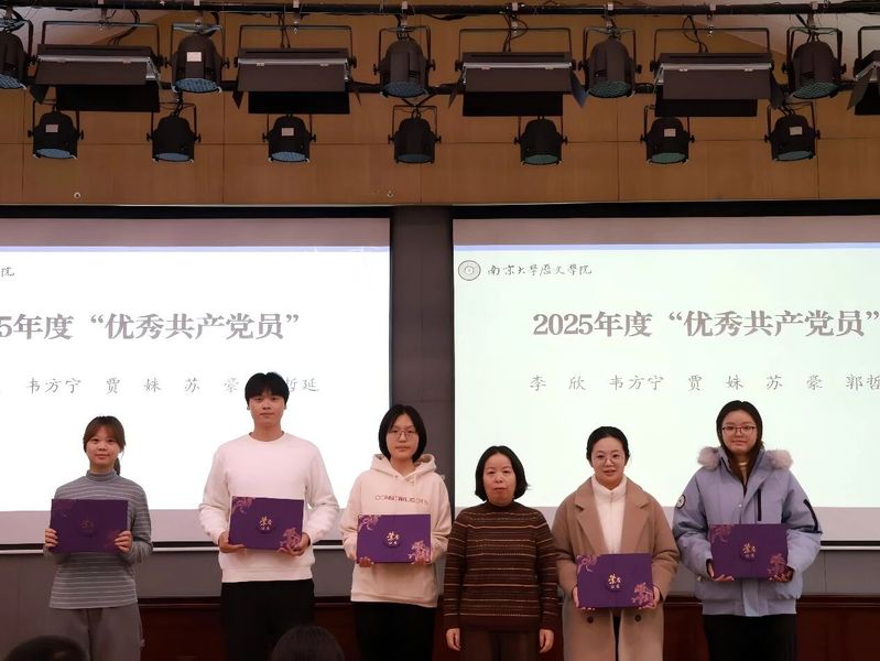 李欣、韦方宁、贾姝、苏豪、郭哲延5名同学荣获伟德国际victor19462025年度优秀共产党员荣誉称号。伟德国际victor1946副经理任玲玲老师为获奖同学颁发证书。