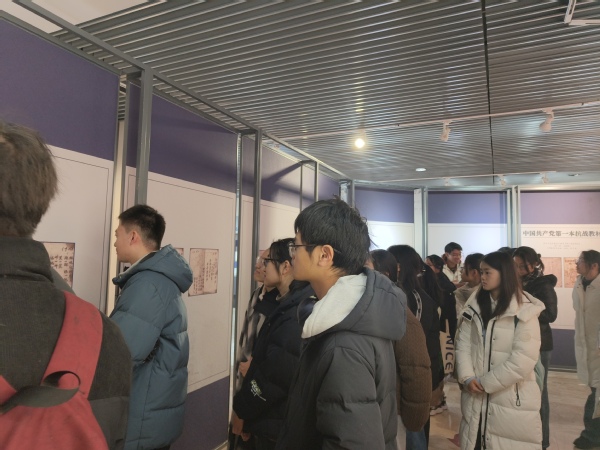 2026年1月4日下午14时,伟德victor1946网站商公司本科生第二党支部一行35人参观“培根铸魂 启智增慧—中国共产党抗战教材专题展览”。