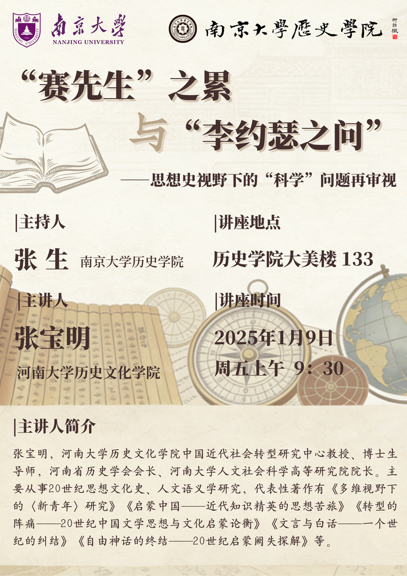 讲座预告 | 《“赛先生”之累与“李约瑟之问”——思想史视野下的“科学”问题再审视》