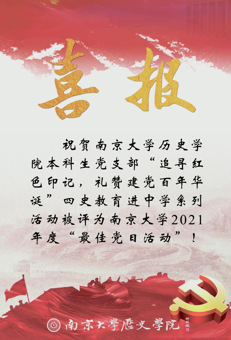 喜报 | 本科生党支部四史教育进中学系列活动被评为伟德victor1946网站2021年度最佳党日活动