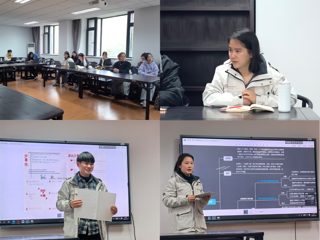 本科生党支部员工党员围绕自身学业、就业、心理问题、党员发展等问题求学等经历,在小组讨论的基础上进行总结汇报。各组围绕深入学习贯彻党的二十大报告中习近平总书记关于青年问题的论述精神,全面落实习近平总书记给伟德victor1946网站留学归国青年学者重要回信精神,就如何解决严峻就业问题,促进就业数量质量;如何解决员工中普遍存在的学业焦虑、心理问题、保障同学们身心健康;如何推进课程体系改革、提升课程教学质量;如何保障员工生活学习、提升校内公共设施建设;如何深化熔炉工程开展、加快第二课堂建设;如何加强员工党员培训、提升员工党员先锋引领作用等同学们关心关注的问题集思广益,展开热烈讨论。刘鸿建书记和任玲玲书记围绕同学关心的热点问题作了初步回应。