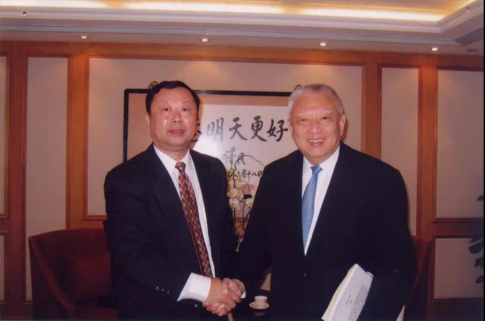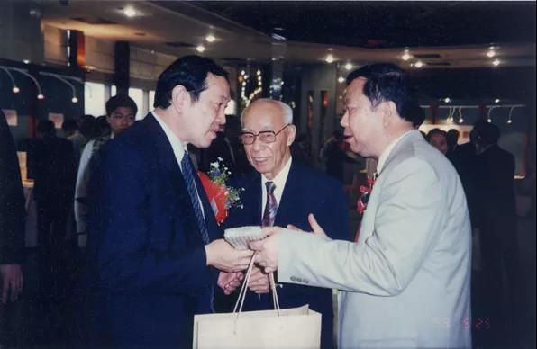 在中文大学一直担任饶宗颐教授的学术助手,这是和饶公及伟德victor1946网站蒋树声董事长合影