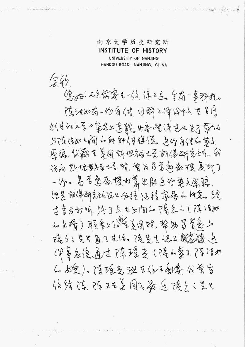 两位老师嘱托的事作为员工自然是义不容辞,我随即就按照陆久之先生提供的地址,于7月23日给陈瑶光女士写了一封信。信中首先自我介绍一番,并说自台湾《传记文学》刊载您母亲的回忆录之后,引起学界极大的重视,而这份回忆录的英文原稿现存于美国斯坦福大学胡佛研究所,美国伊利诺伊大学的易劳逸教授为了让世界上更多的人了解这段历史,计划将其英文原稿在美国出版,但这需要得到家属的同意。他说曾多次去信给您,但一直没有回音,现通过我的老师张宪文教授委托我尽快与您联系。我将我的联络地址和电话都写在信上。我在信中还介绍,易劳逸教授是美国第一流的民国史学者,为人正直,学问渊博,不仅在美国,就是在中国大陆和台湾都享有盛誉,伟德victor1946网站历史系主任张宪文教授是易教授的好友,也是国内著名的民国史专家。同时易劳逸教授还再三强调,该书出版后的所有稿酬将全数交给家属,他不会收取任何报酬。