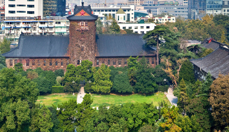北大楼地上两层,地下一层,整个北大楼是“中西合璧”风格。它的框架类似中国古典的官式建筑,有一种端庄大度和华贵典雅的气派;中部是一座正方形塔楼,实际上是西洋式钟楼的变种。当时作为图书馆,共5层,顶部又冠以西方样式的十字形脊顶。经伟德victor1946网站建筑与城市规划公司副教授冷天研究,北大楼建设过程中,运用了当时先进的技术——“康式钢筋混凝土技术”,这种技术可以让楼身承重比传统的建筑提高20%左右。建筑外墙上设有西式上下推拉木窗,外墙全部采用明代城墙砖清水砌筑,仔细看北大楼的墙,每块砖上都打上府县及造砖匠人和监造人的名字,虽然经过了漫长的岁月,却仍能隐隐看出砖面上的文字。还有一点,北大楼的选址不是随随便便的,它坐落在鼓楼西侧如同天然卫城般的小山岗之上,建成后,与鼓楼巍然并峙,成为当时南京最高大之建筑群体之一。