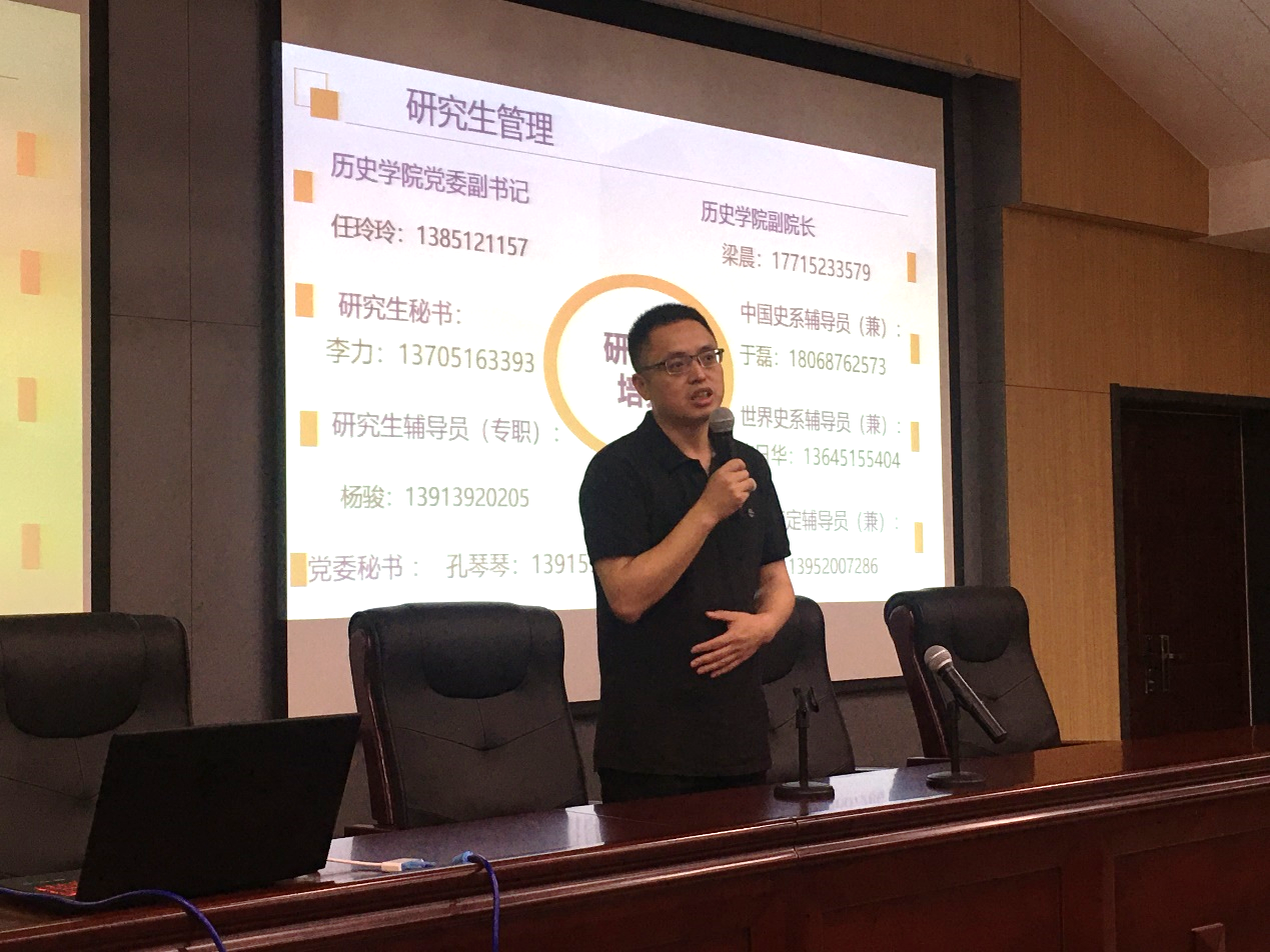 研究生辅导员杨骏老师则向大家介绍了院系领导与公司各系统的概况,具体说明了公司的学业奖学金、医疗保险、请销假制度等项目,并就规范网络行为、合理处理人际关系等校园生活的方方面面提出了建议。杨骏老师还着重强调了预防诈骗等安全教育内容,同学们的安全意识也有所提高。