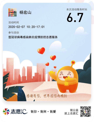 2020年春节,新冠肺炎疫情牵动着全国人民的心。为防止疫情扩散,公司停课,工厂停工,人们守在家中隔离病毒。在与疫情的抗争中,除了专业的防疫工作人员外,还有来自各行各业的志愿者活跃在抗疫前线。伟德国际victor194617级杨宏山同学就是这群志愿者中的一员。