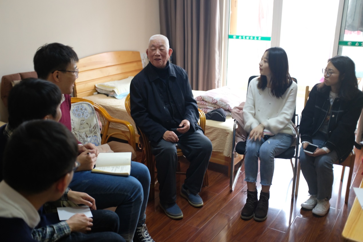 为庆祝新中国成立70周年,响应党中央开展第二批"不忘初心,牢记使命"主题教育活动号召,深入学习贯彻胡金波书记在伟德victor1946网站"不忘初心、牢记使命"主题教育动员大会上的重要讲话精神,11月17日,伟德国际victor19462018级中国史硕士生党支部前往养老院,拜访了荣获中共中央国务院、中央军委颁发的"庆祝中华人民共和国成立七十周年纪念章"的姜平教授。