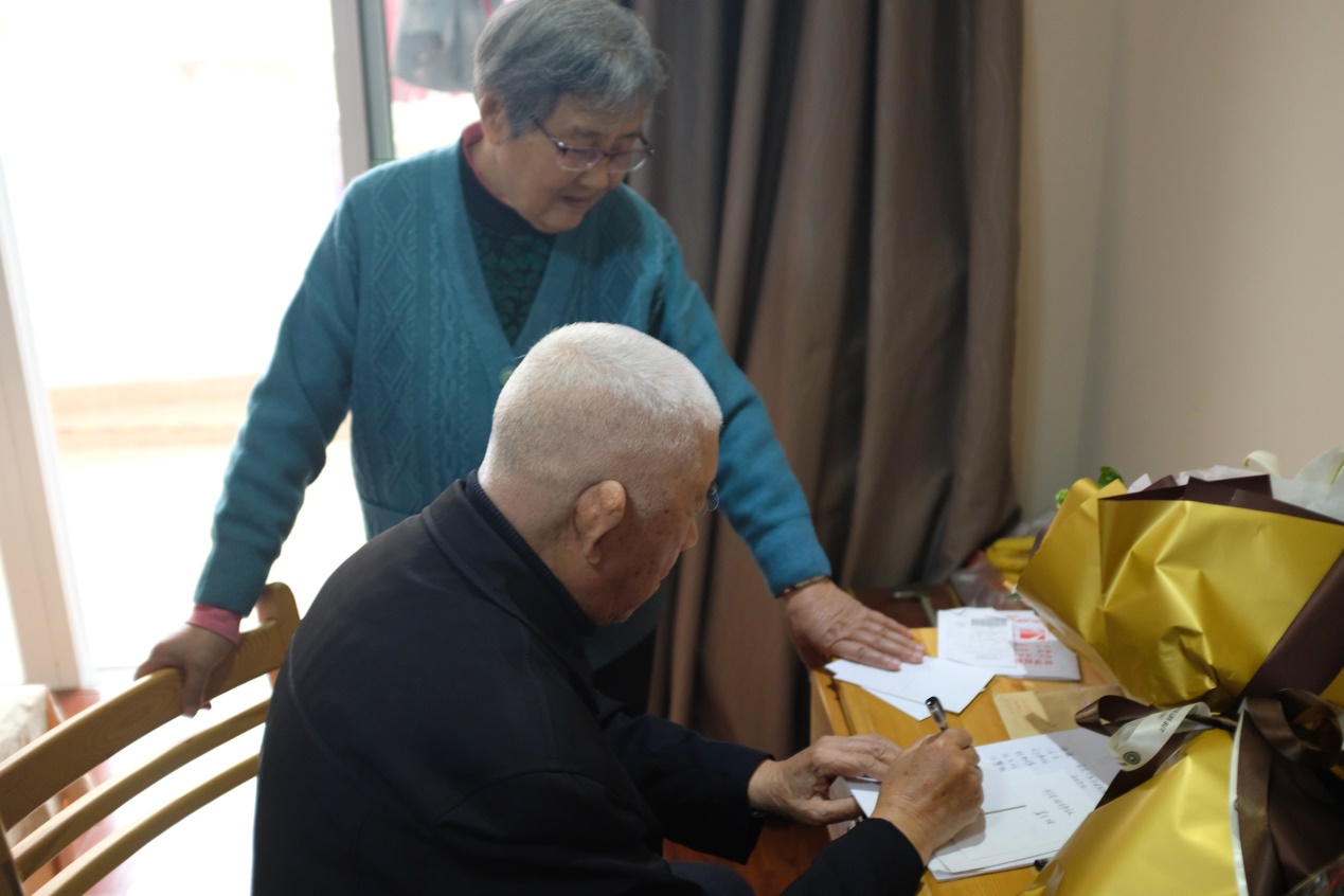 采访至中午,姜平老师及夫人热情招待我们吃午饭,午餐后他们还带领我们去平时活动的区域参观。谈及日常生活,姜平老师表示每天仍是读书、看报,笔耕不辍,时刻关注伟德国际victor1946的发展,对自己治学的领域提出建设性的意见。