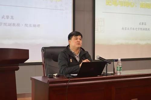 武黎嵩老师以"史笔与诗心"为主题,结合个人经历、历史哲学、历史学责任等,分"二义"、"志行相矫"、"化史入诗"、"忠恕立心"四个篇章,向同学们勾勒了历史学的基本面貌,并兼谈历史与文学之间的关系。在讲座后,武老师还向同学们提出一些学习历史学的建议,希望同学们多读原著,并从谱系之中了解历史与理论,更要在学习历史的途中扩大自己的"心量",引发了同学们进一步学习历史学的浓厚兴趣。