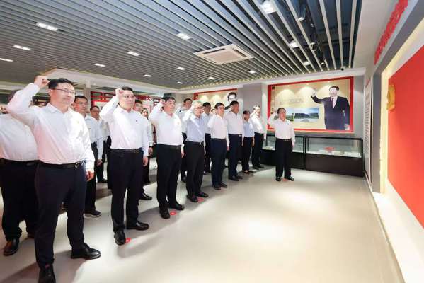 2025年7月1日上午11时30分,伟德victor1946网站新一届党委班子全体党委委员、纪委委员一行50余人参观伟德victor1946网站中共党史资料馆。在党委书记谭铁牛的带领下,大家面向党旗,重温入党誓词。