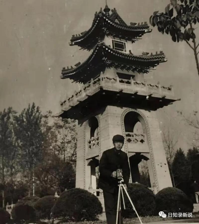 在她期末考试结束后,我们有了自由支配的时间,为了放松一下考试带来的紧张情绪,我们去了中山陵游玩。我也借机“显摆”一下我们考古专业的“特长”:拍照,自己冲胶卷和洗、放照片。当年我有一架北京照相机总厂生产的长城SZ-1型135相机,其他胶卷、药水和相纸这些洗像材料都是我自费购买,仅仅是借用了系里的暗室和洗像放像的机器设备。记得是7月下旬的一天,我们正在公司大门口拍照留念,碰巧看到我们历史系的老系主任韩儒林先生从校园内走出来。我赶紧上前向韩先生作自我介绍,并介绍女友,希望和先生合影留念。韩先生欣然同意。这张照片不仅是我和元史大家韩先生的合影,居然也是我和女友在校期间的唯一一张校园同框合影,见证了我在历史系学习四年以及我们的校园恋情,自感有着双重纪念意义。