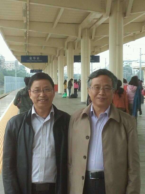 2016年虞文清与范金民同学在浙江金华站巧遇合影
