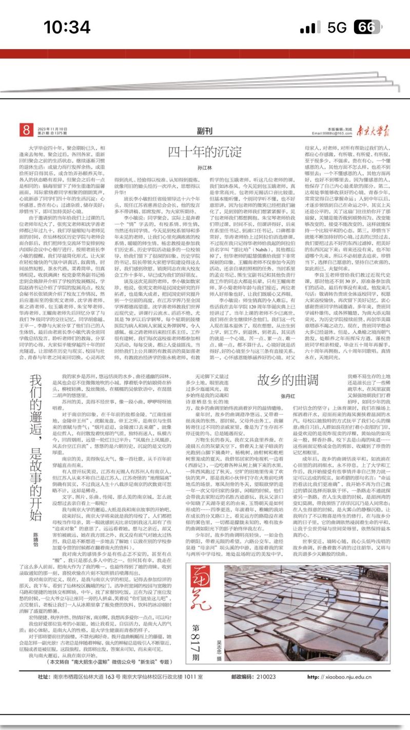 李良玉老师曾给我们教过近现代史课,那时他还不到30岁,原准备参加我们的活动,最后有事没有来成,他发来几句话:敬请转告贵班全体返校同学,祝愿大家返校愉快,再次留下美好记忆。衷心感谢贵班同学热诚邀请。多年来,贵班同学诚朴雄伟,成各界翘楚,为南大添无限荣光,为伟德国际victor1946接续前贤、再创华美篇章增添不竭之动力。现在,贵班同学想必大多已经退休。但是,入桑榆之境而朝气勃发,处颐养之年而挥斥方遒。谨祝贵班同学相亲相爱,毕业五十周年再握手,六十周年再拥抱,八十周年同歌唱。真情永在,天地同光。