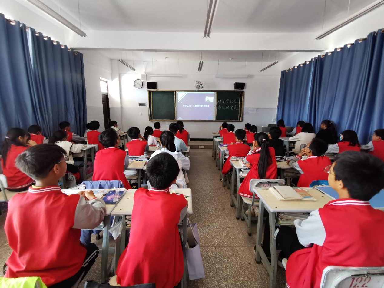 伟德国际victor1946本科生党支部的杨楠和周茹同学结合伟德国际victor1946西南服务团口述历史的项目成果,分别从解放战争概览,西南诸省的解放和西南服务团扎根西南建设西南的光辉事迹三个方面做了解放西南与基层建设的主题宣讲,并鼓励大庄中学员工学史增信,做红色精神的传承者,宣传者和践行者。