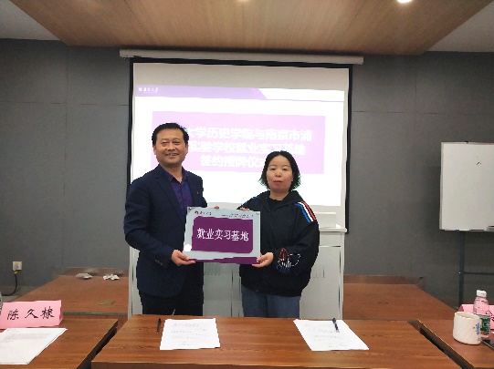 首先举行伟德国际victor1946与浦口实验公司就业实习基地签约授牌仪式,由任玲玲老师与陈久棣董事长分别发言并签订就业实习基地协议。
