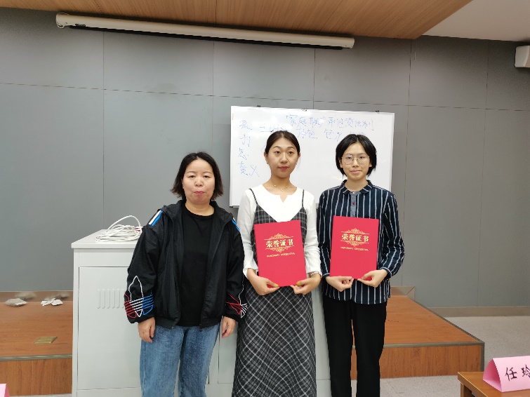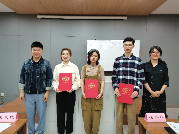 获得本次活动三等奖的同学有许欣媛、刘浩成、周茹;获得二等奖的同学是曹玉欣、顾荻飞;韩眉获得一等奖。在热烈的掌声中,模拟求职大赛落下帷幕。各位评委老师为参赛选手颁发获奖证书,选手及各位评委移至伟德国际victor1946前坪合影留念。